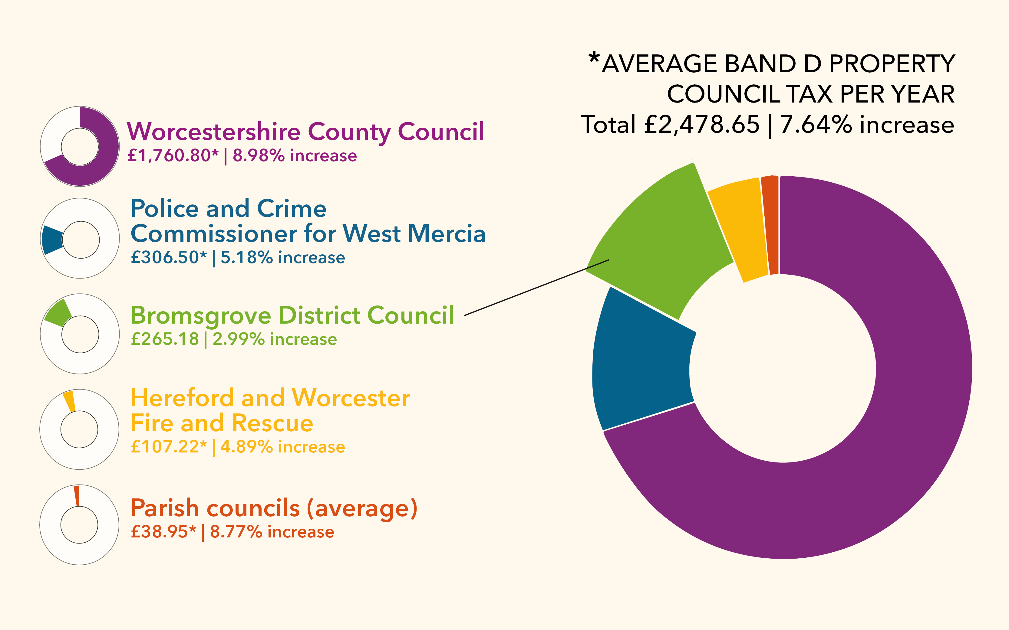The average full council tax bill for a Band D household is £2,478.65, a 7.64% increase from last year.