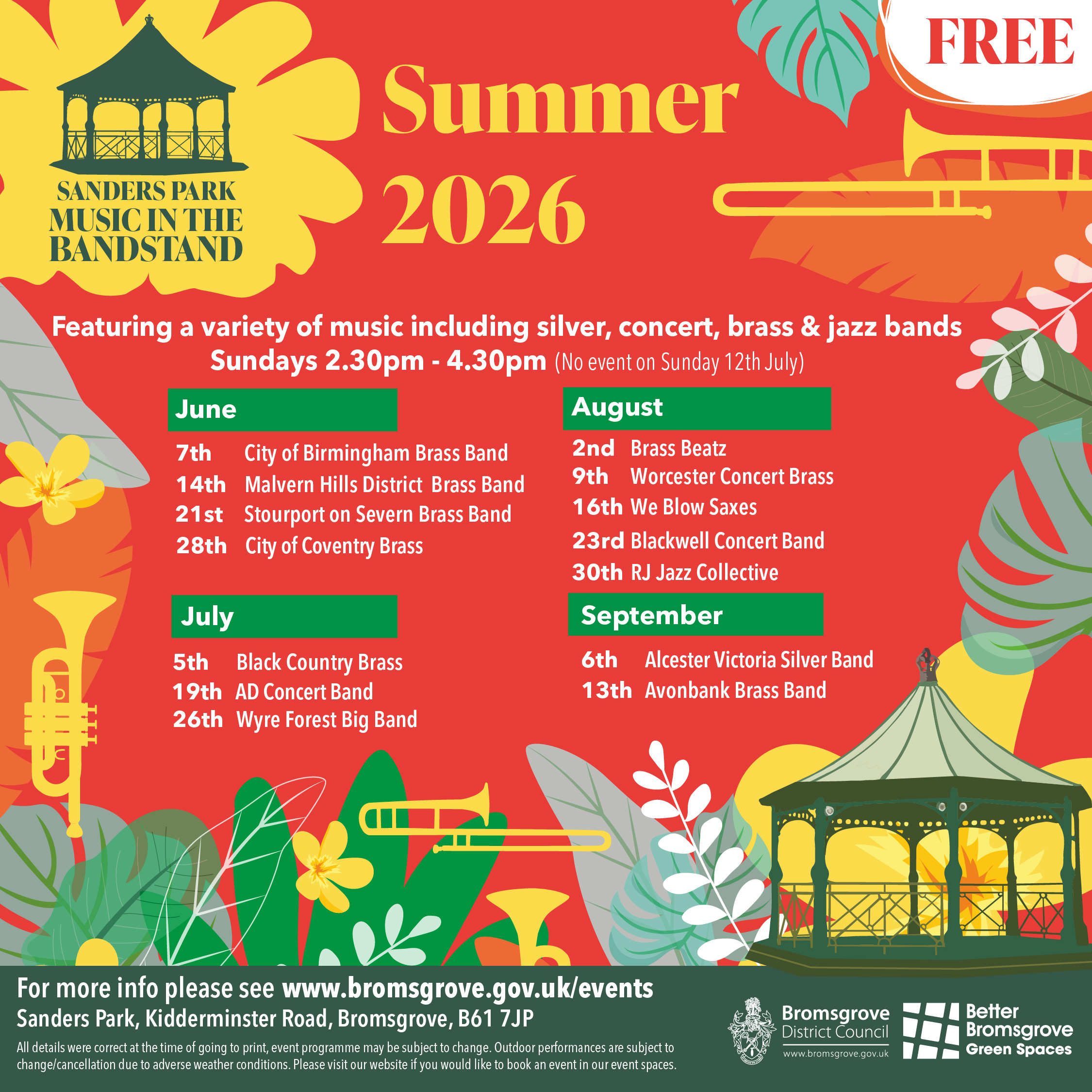 Location: Jubilee Bandstand, Sanders Park, Kidderminster Rd, Bromsgrove, B61 7JW